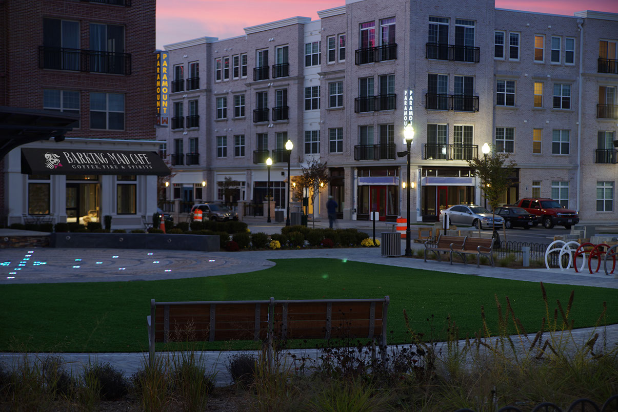 Featuring a large jet fountain and a fully equipped stage for musical performances and other events, Performers Park will act as a draw to both nearby residents and the 10 million square feet of employment surrounding the project.